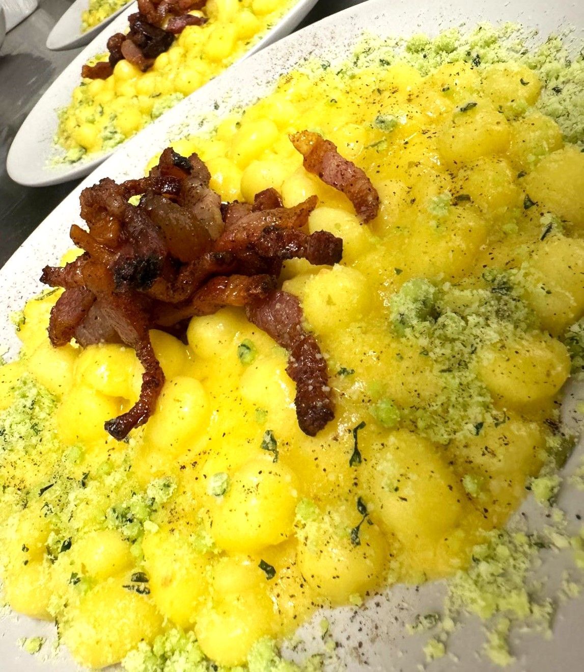 Dalla scelta del tovagliato, alla selezione delle etichette dei vini della cantina, ai tagli delle carni da cuocere sulla brace del camino fino alla preparazione della pasta fresca ripiena e non solo (fettuccine, tagliolini, lasagne, ravioli etc…), Gianluca e Michela condividono ogni decisione per raggiungere il miglior risultato che possa diventare per gli ospiti del loro ristorante Il Funghetto Matto a Marcellina un felice momento conviviale da raccontare.