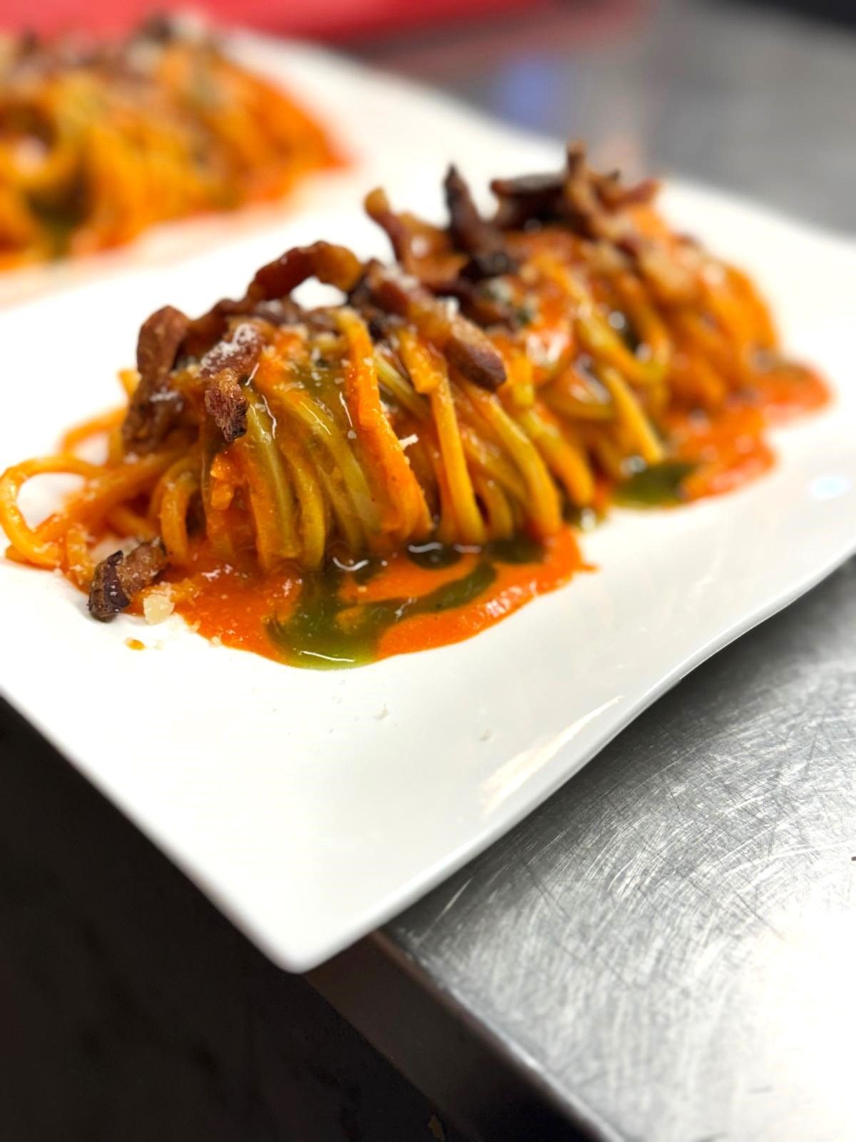 Le creazioni culinarie di Gianluca variano quotidianamente e sono sperimentabili nei piatti fuori menù che sceglie di preparare in base agli ingredienti stagionali e soprattutto mantenendo freschezza e qualità. Il tocco amabile di Michela rende la permanenza in sala gradevole e confortevole.